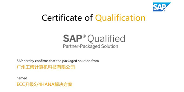 2020年5月,工博科技提供的ECC升级S/4HAN解决方案成功通过SAP官方认证。这是华南区第一家通过ECC升级S/4HANA解决方案的SAP合作伙伴。
